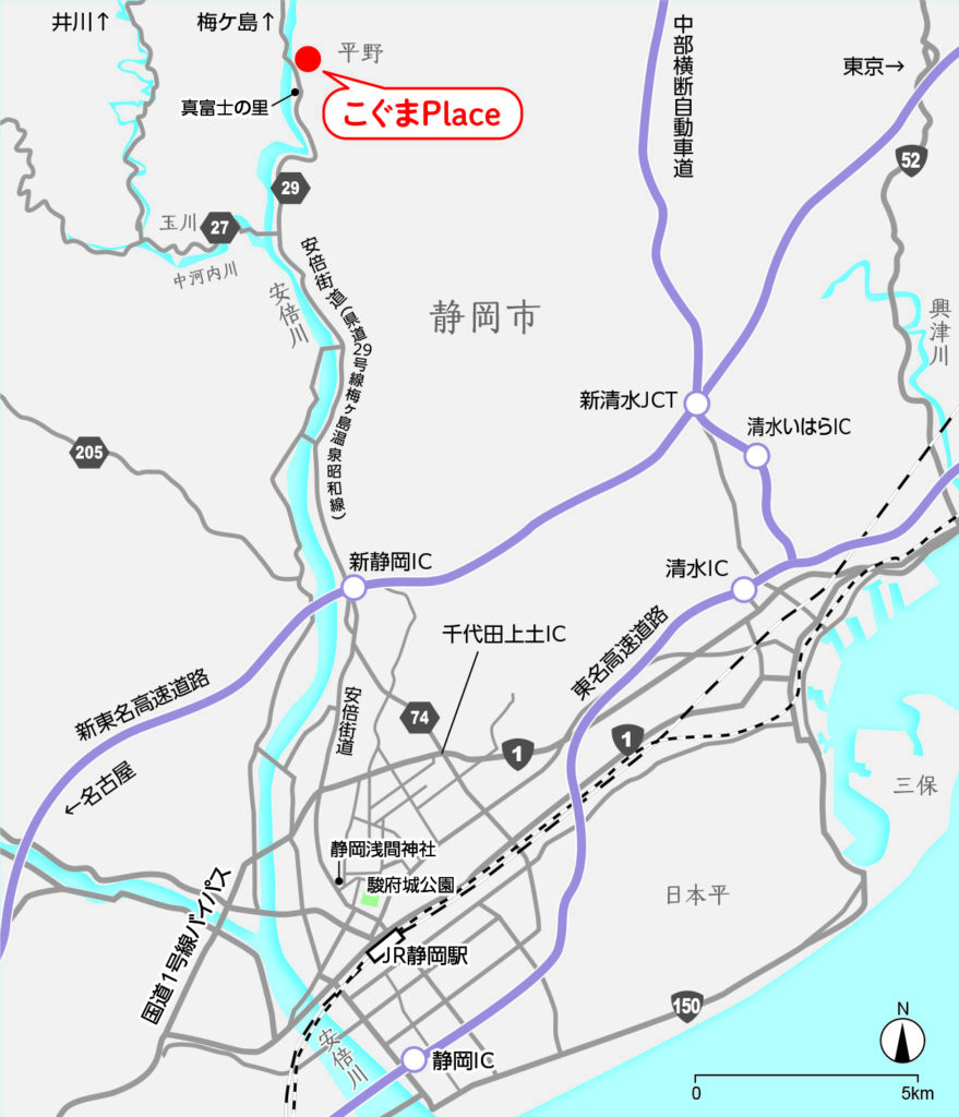 【所在地】静岡市葵区平野135番地(車のナビもこちらを入れてください)